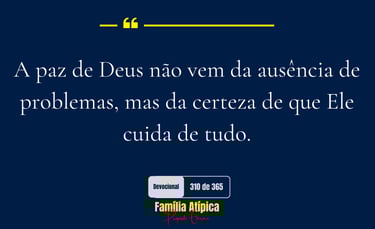 A paz de Deus não vem da ausência de problemas, mas da certeza de que Ele cuida de tudo.