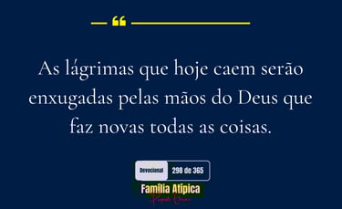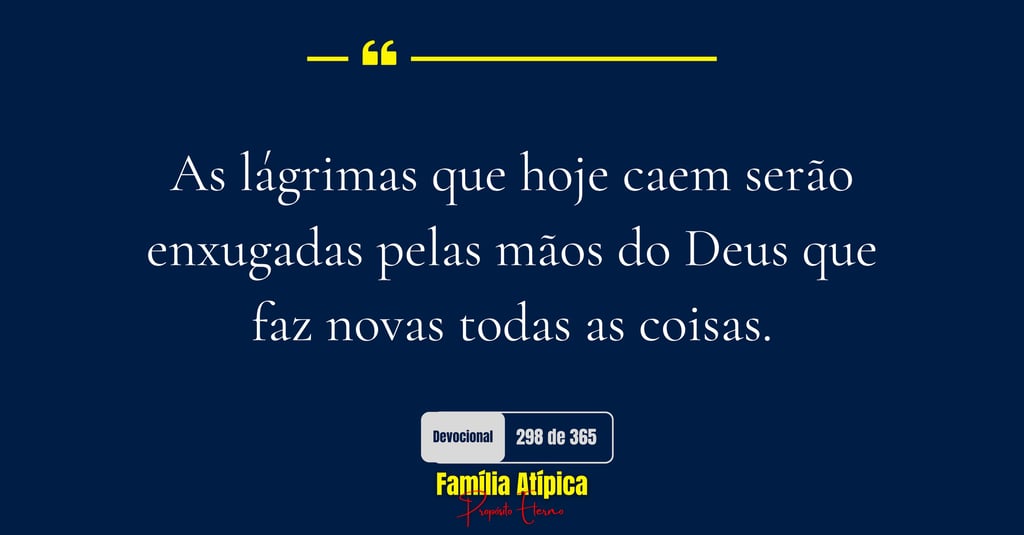 Para pais e mães atípicos, essa é uma lembrança de que as lágrimas não são sinal de fraqueza, mas de humanidade. E, diante de Deus, nenhuma lágrima é desperdiçada. Cada uma delas é contada, guardada e transformada em força. O pranto de hoje será o testemunho da vitória de amanhã.