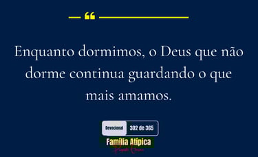 Para famílias atípicas, essa promessa é uma fonte de descanso. Saber que o Deus que criou o universo é também o Deus que vela pelo sono dos filhos traz paz ao coração. Ele guarda, protege e conduz com sabedoria — mesmo quando não vemos o que está por vir. Nosso papel é confiar que o cuidado divino nunca falha.