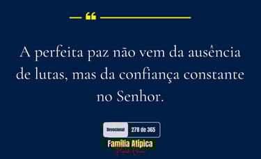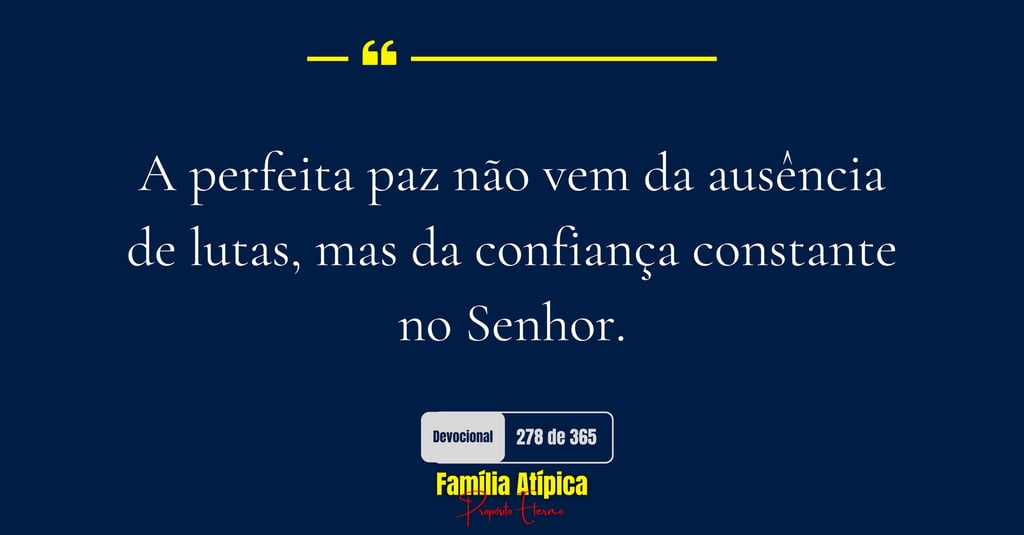 O segredo está na firmeza do propósito: confiar em Deus em todo tempo. Isso não significa ignorar os problemas, mas decidir descansar no cuidado do Senhor, crendo que Ele sabe o que faz. Para pais e mães que enfrentam os desafios da jornada atípica, essa promessa é essencial: em meio ao caos, existe paz disponível, uma paz que só Deus pode dar.