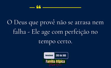 Na realidade da família atípica, as necessidades são muitas: recursos financeiros, tempo, apoio emocional, sabedoria, paciência. Às vezes parece que a conta não fecha, que as forças não são suficientes e que as portas permanecem fechadas. Mas o Deus que provê continua operando, muitas vezes de formas inesperadas, levantando pessoas, abrindo caminhos e renovando a fé.