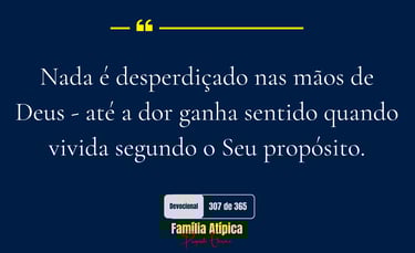 Para famílias atípicas, essa promessa é um farol em meio à incerteza. O diagnóstico que mudou a rotina, a luta diária por inclusão e os dias de exaustão não estão fora do plano de Deus. Ele trabalha em cada detalhe, moldando corações e fortalecendo a fé. Quando olhamos com os olhos da eternidade, percebemos que nada é em vão — cada passo, cada lágrima e cada conquista fazem parte de um enredo divino perfeito.