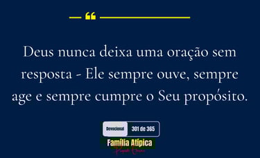 Para famílias atípicas, a oração se torna uma constante: pedidos por paciência, sabedoria, recursos, progresso e paz. Em meio às demandas diárias, é fácil sentir que orar não muda nada. Mas cada clamor é ouvido, e o Deus fiel transforma até o que não entendemos em parte de um plano maior. Ele não apenas responde, mas revela coisas grandiosas que só podem ser percebidas quando o coração aprende a esperar.