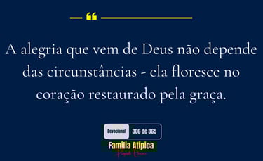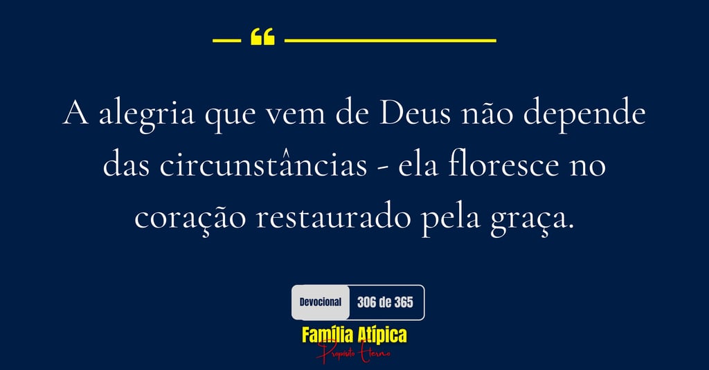 Para famílias atípicas, os desafios diários podem drenar a leveza do coração. O cuidado constante, as preocupações e as responsabilidades podem fazer a alegria parecer distante. Mas Deus promete renovar o ânimo e devolver o brilho da esperança àqueles que O buscam. Ele restaura não apenas o que foi perdido, mas também o desejo de continuar obedecendo e servindo com amor.