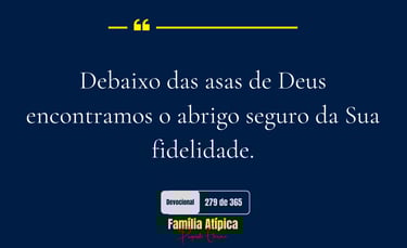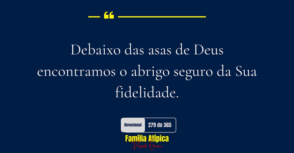 Essa promessa é preciosa para pais e mães atípicos: não precisam viver na insegurança de carregar tudo sozinhos. Debaixo das asas de Deus existe segurança verdadeira, uma proteção que não se limita ao físico, mas alcança a alma e as emoções. O Senhor continua sendo fiel mesmo quando tudo parece incerto.