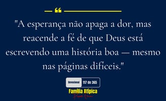 "A esperança não apaga a dor, mas reacende a fé de que Deus está escrevendo uma história boa — mesmo nas páginas difíceis."